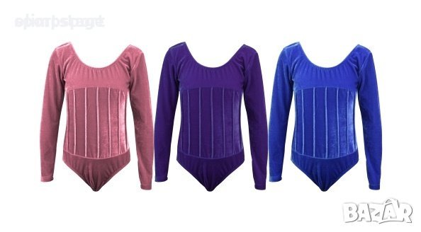 Детско трико MAXI от кадифе с дълъг ръкав и декоративни шевове. Трикото има подплата на предната част, закопчаване е тип боди с метални, телени копчета. Подходящо за художествена гимнастика, танци и балет. Материал - полиестер, ликра, памук. Различни цветове. Различни размери, подходящи за ръст от 130 до 160 см.