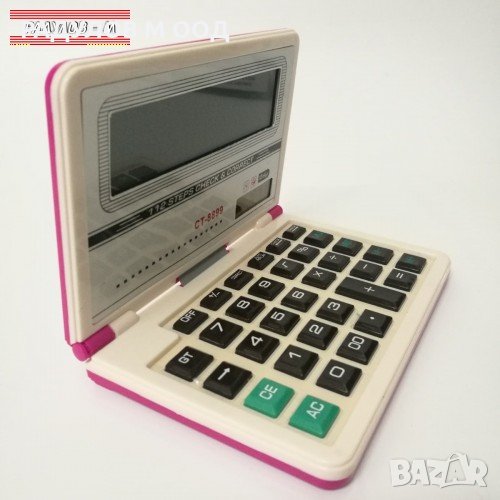 Електронния калкулатор се предлага в различни цветове - син, зелен, розов.