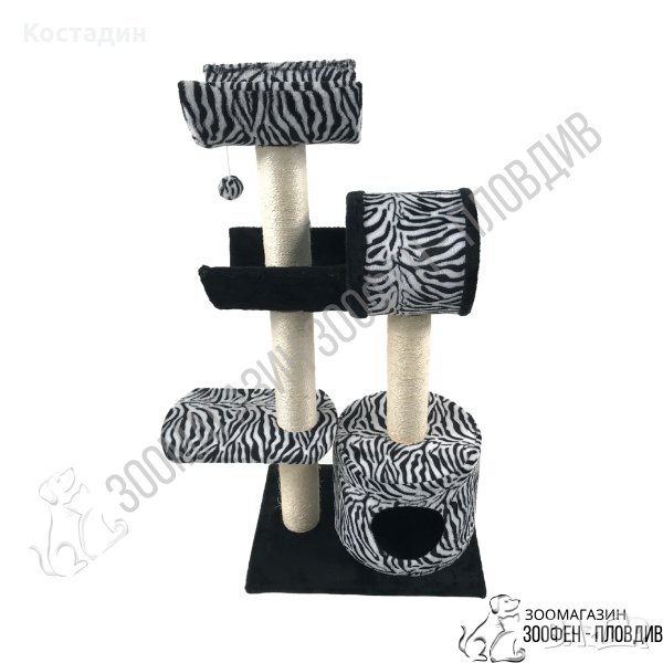 Катерушка/Драскало за Коте/Котка - 49/36/98см - с Къщичка, Овал, 2 Стойки и Играчка топче