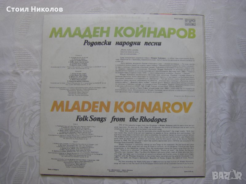 Грамофонна плоча - ВНА 12002 - Младен Койнаров – Родопски народни песни