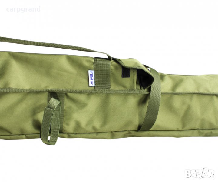 Троен калъф за шарански пръчки с макари, изключително удобен и надежден, предлагащ достатъчно място за съхранение и същевременно открояващ се със стегнат и стилен силует. KK311 е предназначен за съхранение на три въдици, но също така може да се свърже с два единични калъфа КК310, които се захващат триточково от двете му страни посредством вложки, велкро ленти и регулируеми каишки. Свързвайки КК311 с два допълнителни каъфа, ще получите удобна и функционална система за транспорт и съхранение на пет шарански пръчки с макари, която лесно и бързо се разкомплектова. Моделът е със зелен цвят, пасващ идеално на всяко риболовно оборудване.