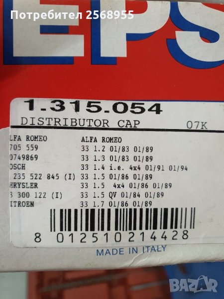 1315054 EPS КАПАЧКА ДИСТРИБУТОР, ДЕЛКО ALFA-ROMEO FIAT LAND-ROVER PEUGEOT RENAULT TALBOT 1968-1998