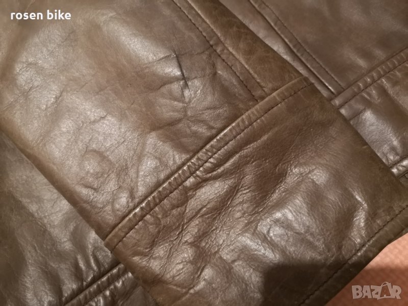 отговаря на размер между Л и ХЛ.естествена кожа.дължина-68 см.подмишници-61 см.рамене-52 см.ханш-56 см.ръкав-68 см.якето е носено,но е много запазено.забележката е снимана на последната снимка.цената е крайна!