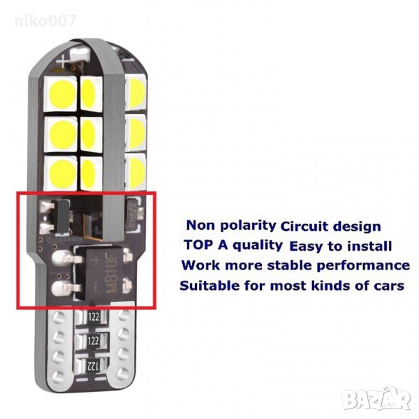 Нов модел супер силни W5W T10 led крушка-габарит-интериор-дневни светлини