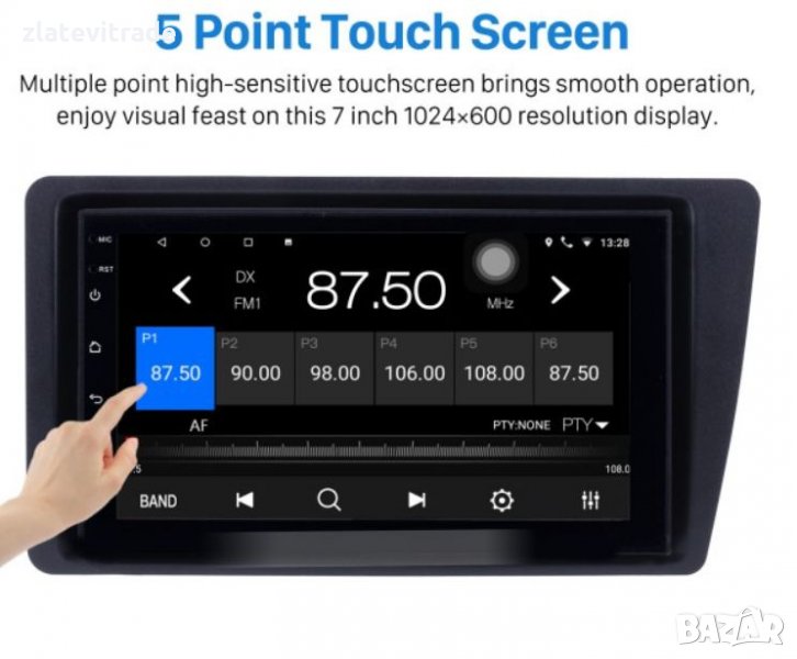 - дисплей с автоматично регулиране дневен/нощен режим в зависимост от интериорното осветление на автомобила и 1024/600 резолюция - HD капацитивен тъч