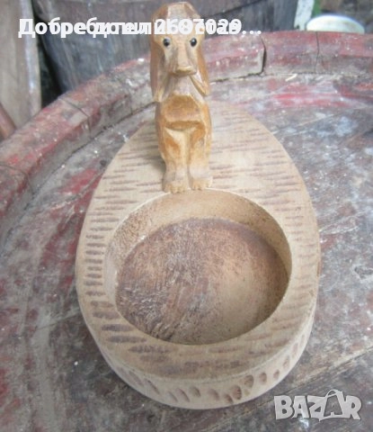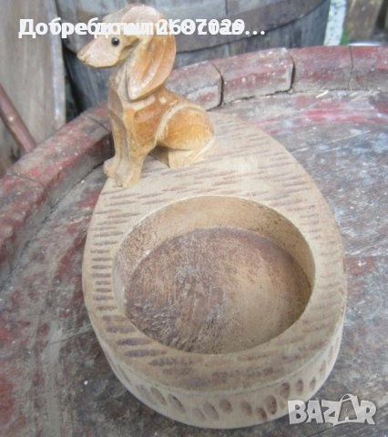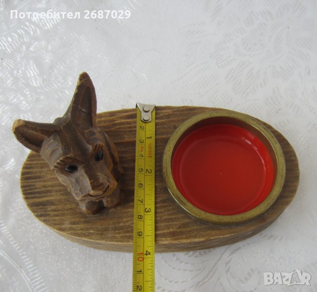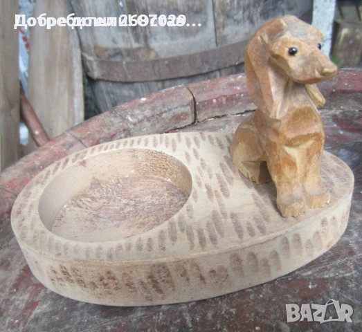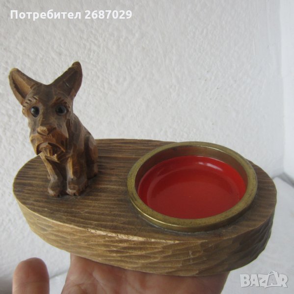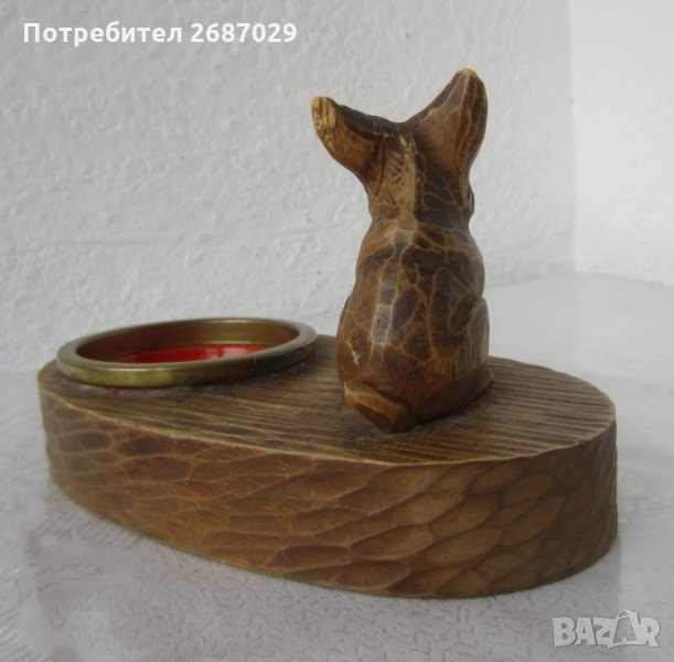 - куче дакел стар дървен пепелник с фигура