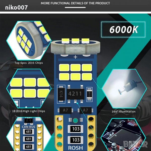 супер мощни W5W T10 led крушка-габарит-интериор-дневни светлини