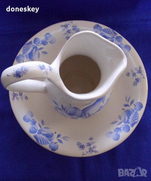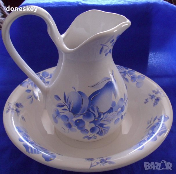 Продавам изящна кръгла кана с леген в ретро стил Барок, изработена от македонска керамика. Подходяща покупка за хотели, шикозни вили и антиквариати. Размери: около 40-45 см е диаметърът на легена, височина на каната в него - около 25 см.