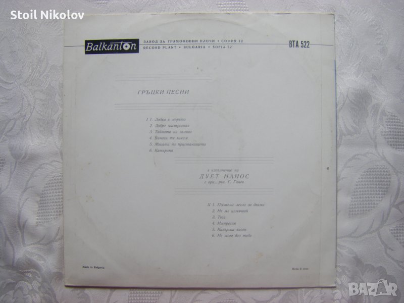 Грамофонна плоча - ВТА 522 - Дует Нанос
