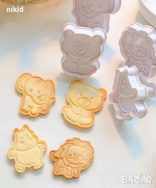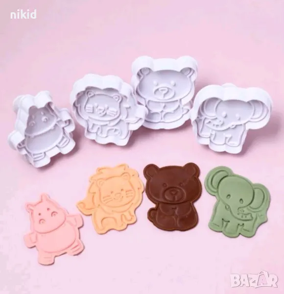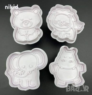 4 бр Диви зоо животни слон мече лъв хипопотам пластмасови форми резци с бутало за сладки резец форма → Обява 31805999