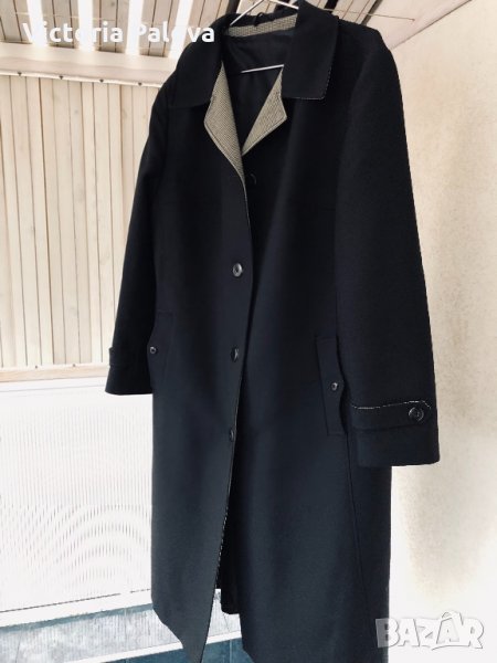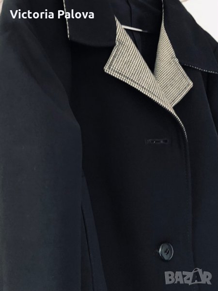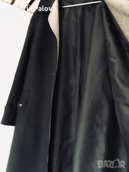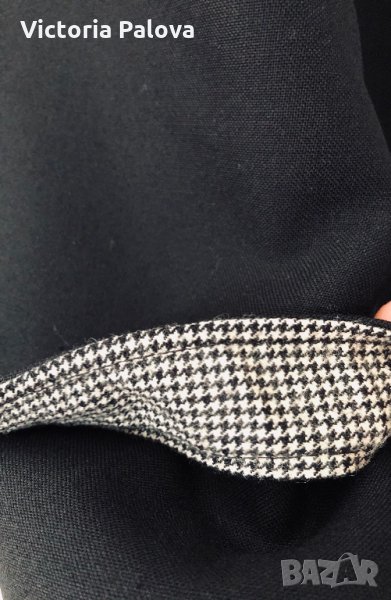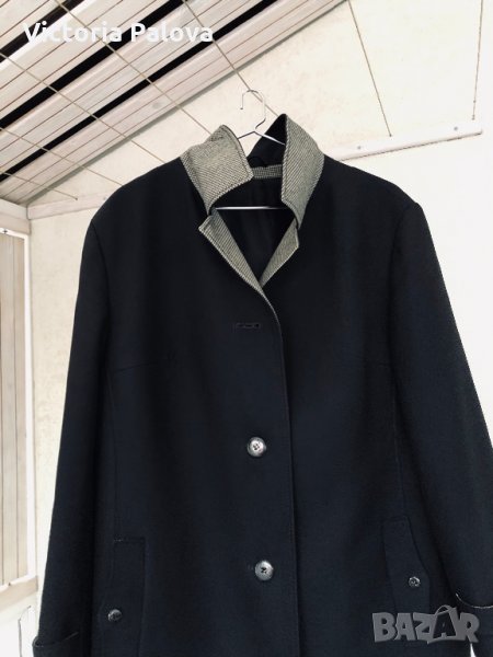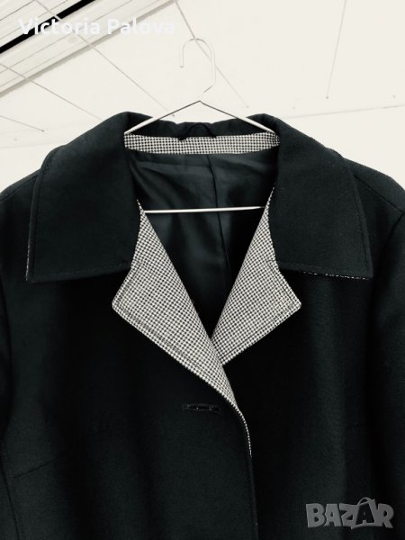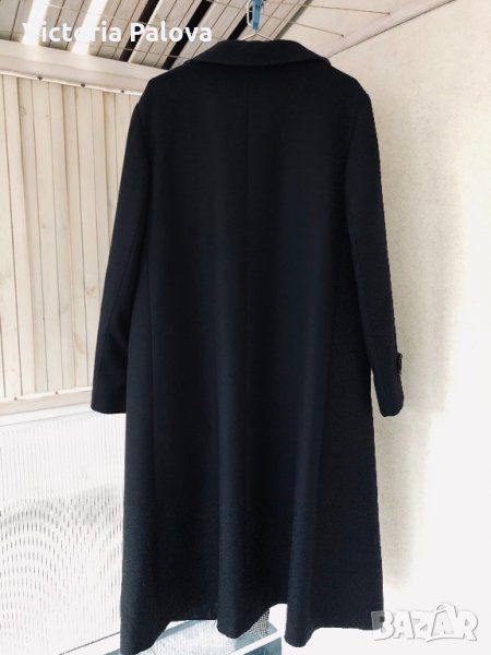 Особено красиво моделно(модел) и качествено палто,неизползвано,структурирано,красива линия и кройка,гладка твърда вълна,черен цвят.рамене-46см,ГО-61см,дължина-116см,ръкав от рамо-61см,от мишница-41см.