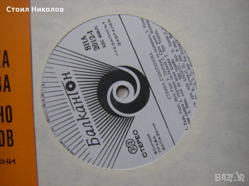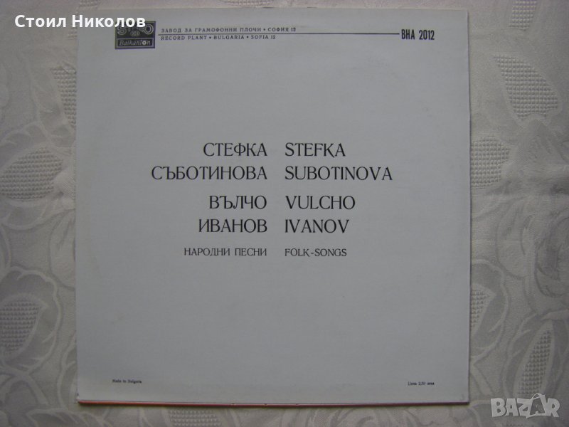 Грамофонна плоча - ВНА 2012 - Изпълнения на Стефка Съботинова и Вълчо Иванов