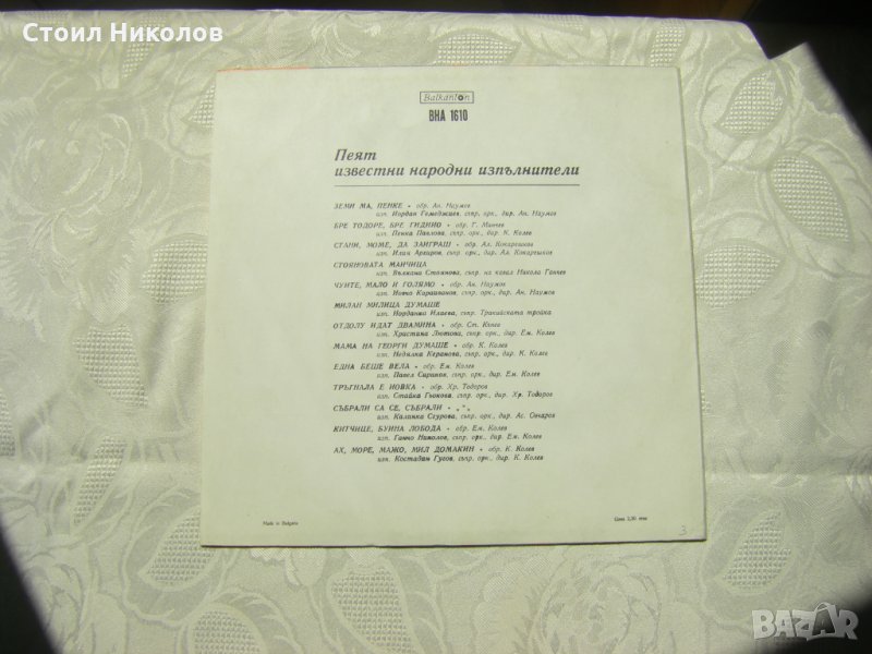 Грамофонна плоча - ВНА 1610 - Пеят известни народни изпълнители