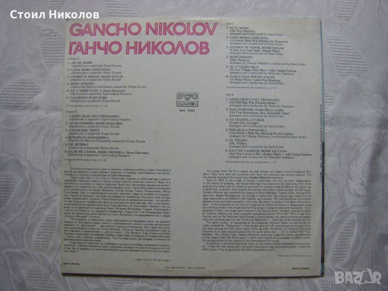 Грамофонна плоча - ВНА 10922 - Ганчо Николов