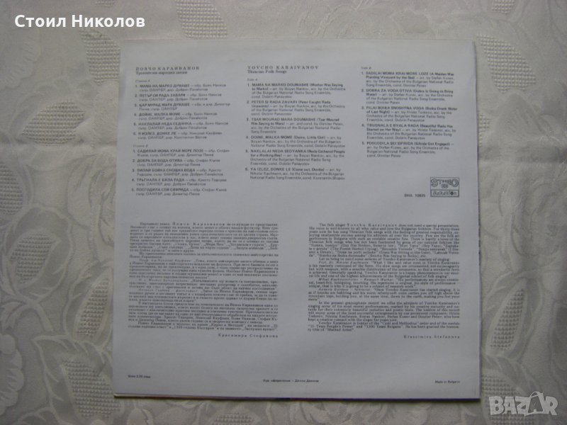 Грамофонна плоча - ВНА 10925 - Йовчо Караиванов - Тракийски народни песни
