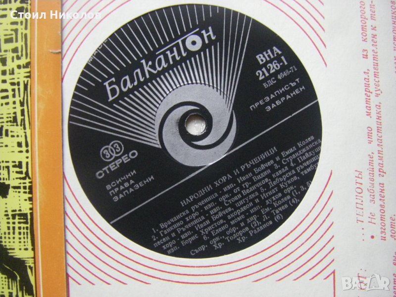 Грамофонна плоча - ВНА 2126 - Български народни хора и ръченици