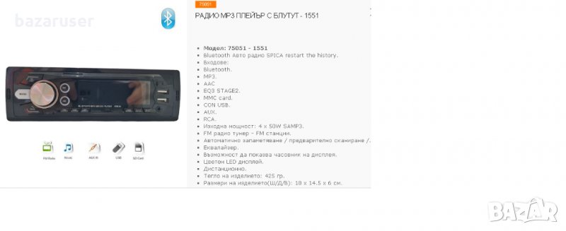 Радио MP3 Player с Bluetooth 1551/75051 → Обява 31813574