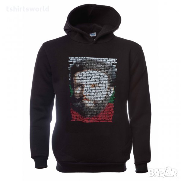 Страхотен нов мъжки суичър в черен цвят с качулка, две джобчета и дигитален печат Христо Ботев, България. Произведен в България под марката PRINTEX от висококачествен 100% памук - триконечна пенирана вата с кардировка, което го прави изключително топъл и желан от нашите дългогодишни клиенти. Моделът е подходящ за пролетния и есенно-зимният сезон, има ластични маншети на китките и ханша, запазващи топлината. Разполага с мека подплата и два отворени джоба в страни. Свободната кройка го прави подходящ както за спорт, така и за ежедневно носене с дънкови панталони. Марката PRINTEX от години се слави със своите топли и качествени суичъри.