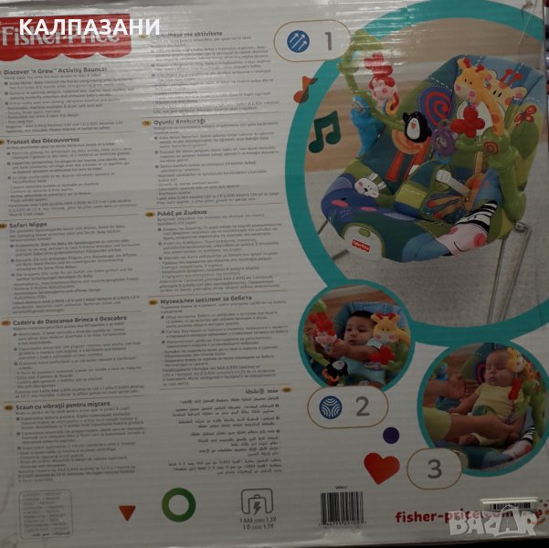 Детското креватче Frisher Price се препоръчва за бебета от раждането. Ярките му цветове и модерен дизайн ще бъдат оценени както от родителите, така и от самото бебе. Вибриращият стол лесно ще приспи и успокои бебето ви, а окачения панел с играчки ще го разсее. С малката си ръка бебето ще се опита да достигне играчката, за да активира забавни песни и звуци. След като бебето си поиграе с играчки, панелът може лесно да се свали, след което можете да включите успокояващи мелодии. Хлапето ще се чувства комфортно и уютно в меката и уютна седалка на стола.