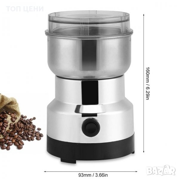 Електрическа кафемелачка и уред за мелене на ядки Nima. Това е Вашият верен помощник в кухнята – Електрическата мелачка Nima! С нея лесно и бързо ще смелите всички, което Ви е необходимо: кафе, ядки, семена и още много други сухи продукти! Смелете дори захар, направете пудра захар за любимият си сладкиш!