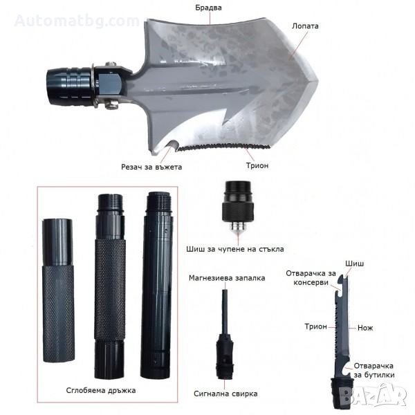 Мултифункционална стоманена лопата Automat, Сгъваема, 12 в 1, Дължина 70 см