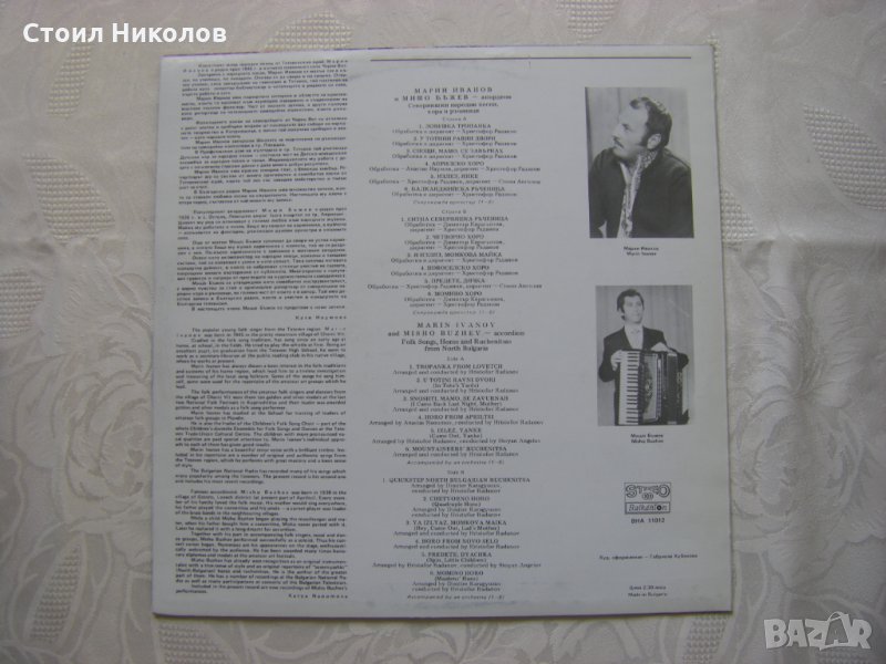 Грамофонна плоча - ВНА 11012 - Марин Иванов и Мишо Бъжев - Акордион.Северняшки народни песни, хора и ръченици.