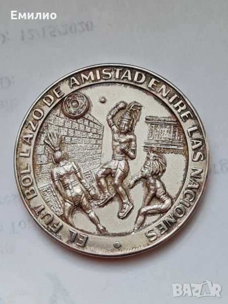Продавам Сребърен Медал от Мексико от 1970 год. 19 ти. Футболен Монреал или нещо такова. Виж снимките. 31.13 гр.925 или 999 проба на Среброто.