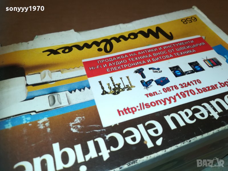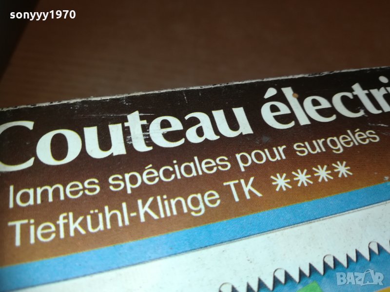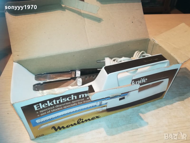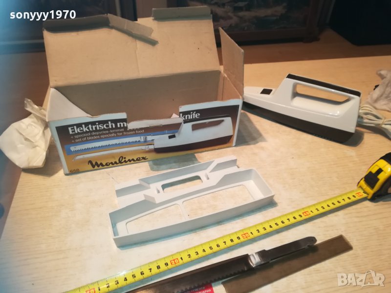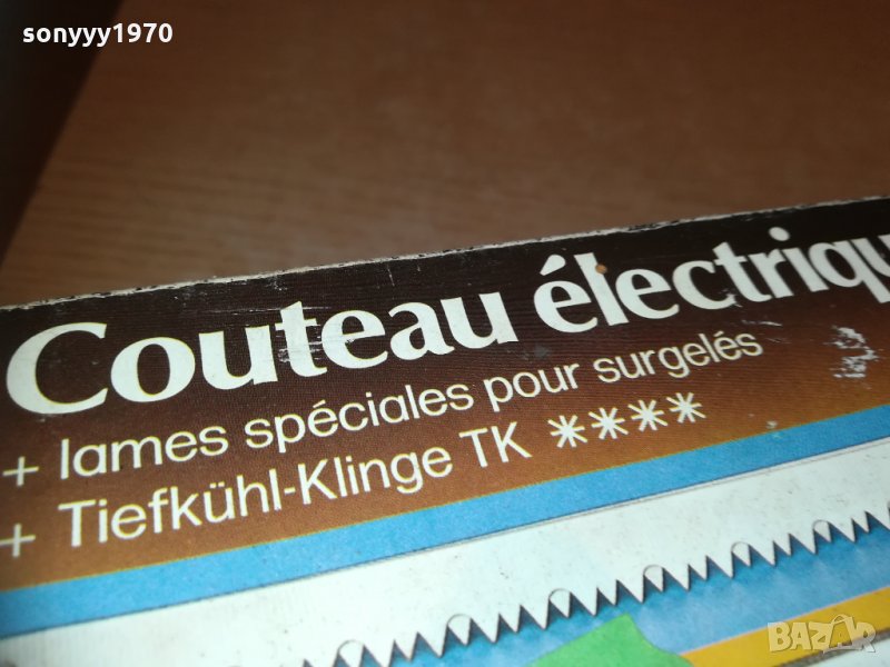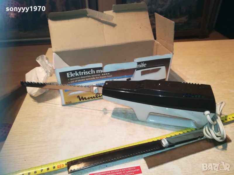 електрически нож на 220в-здрав и с резервен режещ накраиник-за колекция или ползване-стар уред от едно време истинските френски неща! пращаме със спиди или еконт с преглед и тест след превод на капаро за куриерската услуга поради зачестили некоректни потребители-поръчки само тук в саита! по телефона и със смс не! краини цени! бартери не правиме! ПАРИ НЕ ВРЪЩАМЕ! всеки ден нови неща-още 2-3 наши обяви тук