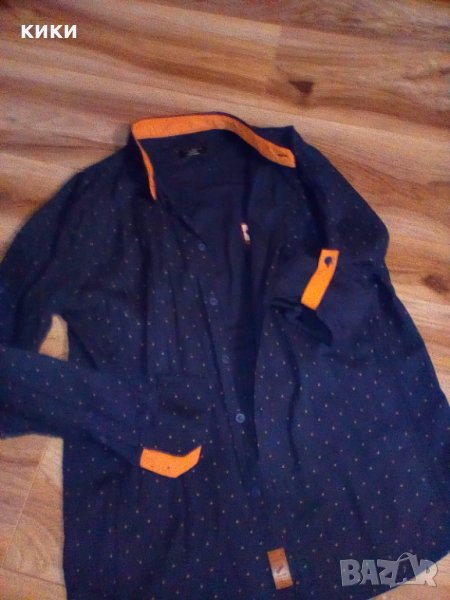 Мъжки ризи синя с оранжево - без следи от носене обличана 1 път с оранжево на ръкави - 10 лв