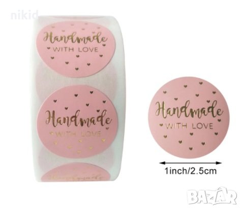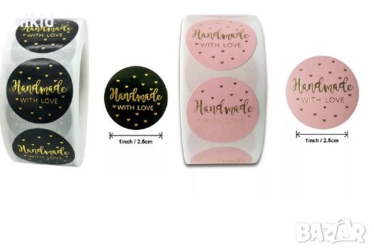 100 бр HandMade with love 3 цвята малки самозалепващи лепенки стикери ръчна изработка подарък → Обява 31836072