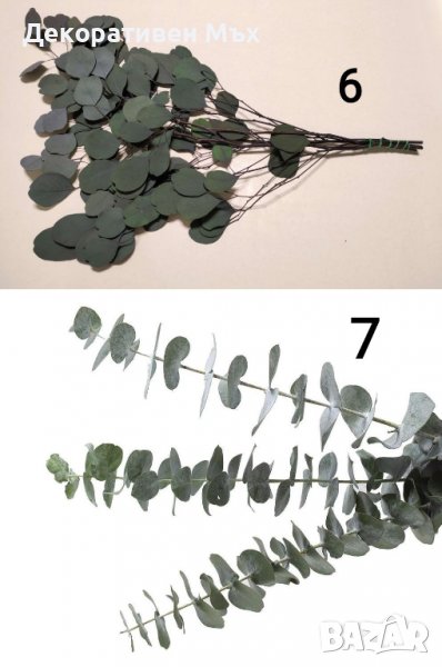 6. ЕВКАЛИПТ – дължина 60/70 см. ; цвят – ЗЕЛЕН ; ЧЕРВЕН ; цена букет – 18 € ; 35,20 лв.