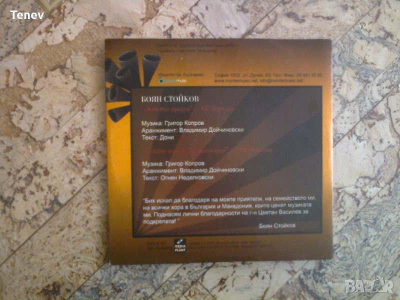 Съвсем нов, неизползван CD диск, разпространяван посредством вестник "Телеграф" на македонския певец Боян Стойков, под спонсорството на небезизвестната КТБ и с лични благодарности към г-н
