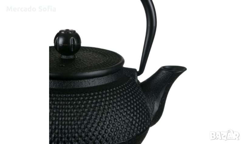 Чугунен чайник с дизайн на релефни точки и заоблена дръжка.Налейте гореща вода в чайника и поставете своя чай или друга отвара върху металния филтър.Оставете го за 3-5 минути и сервирайте.