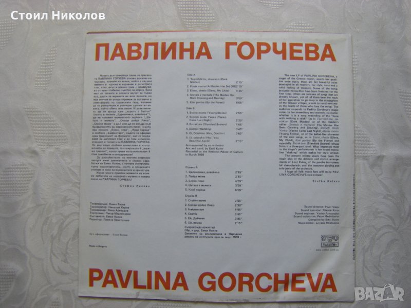 Грамофонна плоча - ВНА 12492 - Павлина Горчева