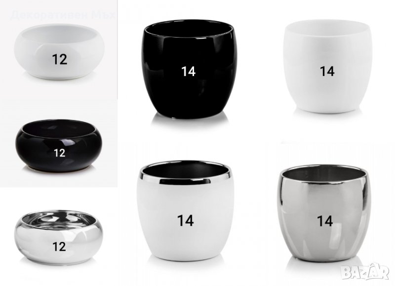 2. БЯЛА/ЧЕРНА МАТ/СРЕБЪРНА МАТ/ЗЛАТНА МАТ КРЪГЛА КАШПА /средна/ – диаметър 10 см.; височина 8 см.