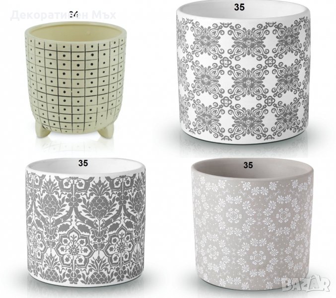35. ЦИЛИНДРИЧНИ КЕРАМИЧНИ КАШПИ – 3 ВИДА MIX- диаметър 14 см.; височина 14 см.