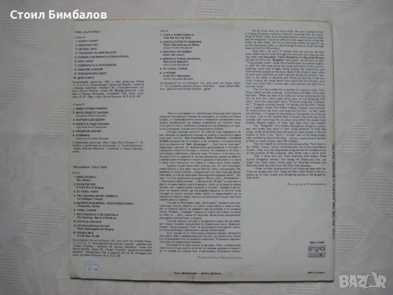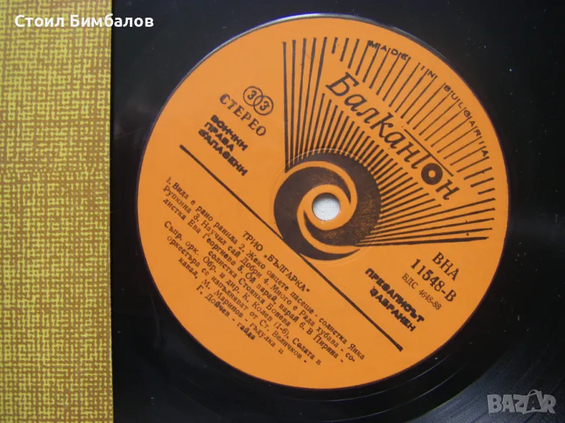 Грамофонна плоча - ВНА 11548 - Трио Българка
