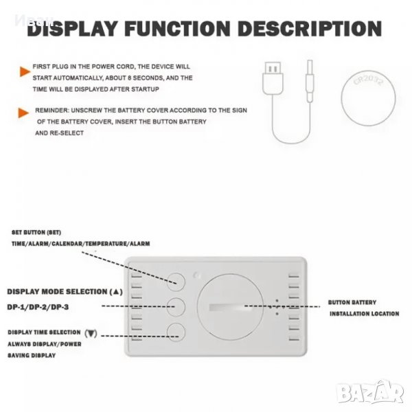 3. Упътване на английски език за настройки и работа на дигиталният часовник.
