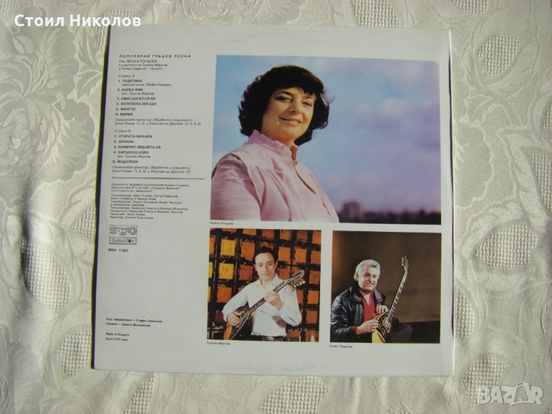 Грамофонна плоча - ВМА 11303 - Любка Рондова. Популярни гръцки песни