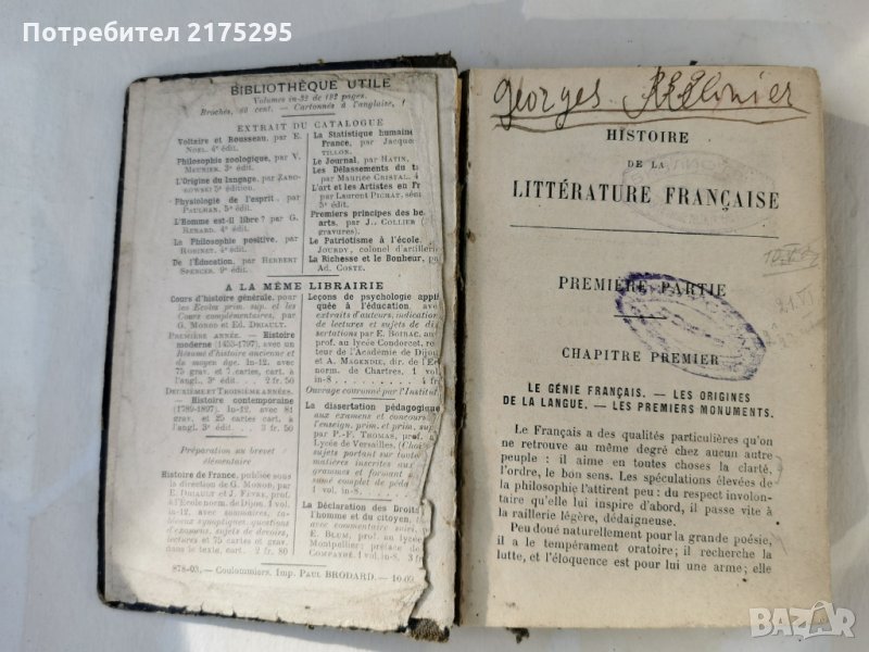 История на френската литература-1903г., снимка 1 - Антикварни и старинни предмети - 31851878 История на френската литература-1903г., снимка 2 - Антикварни и старинни предмети - 31851878 История на френската литература-1903г., снимка 3 - Антикварни и старинни предмети - 31851878 История на френската литература-1903г., снимка 4 - Антикварни и старинни предмети - 31851878 1/4