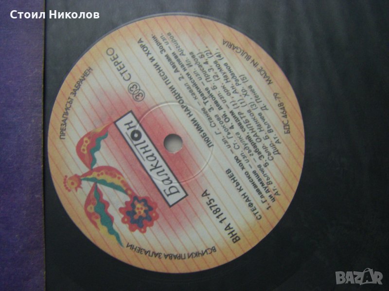 Грамофонна плоча - ВНА 11875 - Стефан Кънев. Любими народни песни и хора
