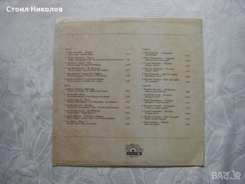 Грамофонна плоча - ВНА 12775 - Балкантон представя магията на Българският музикален фолклор 1 - Певци.
