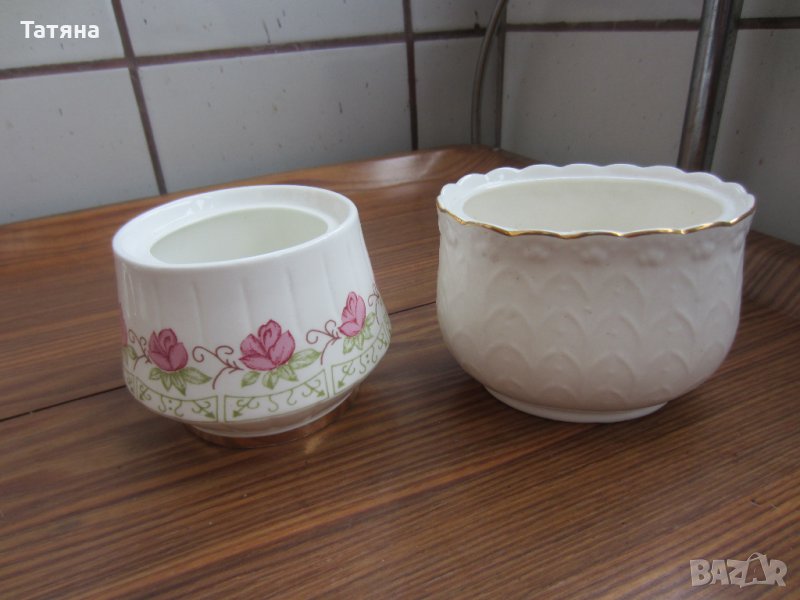 Снимка- 9 -захарници от костен порцелан 4 € ;за брой.Бялата е продадена.Налична е само захарницата с розичките.