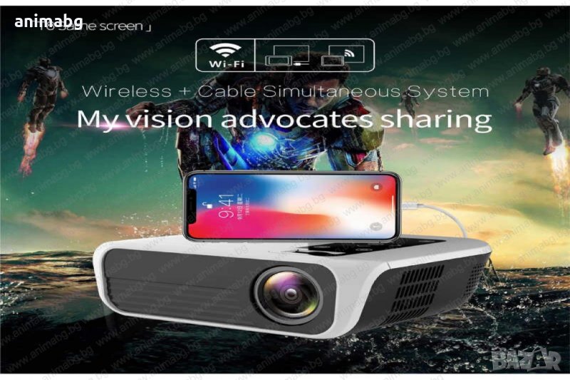 ANIMABG Smart Android Мултимедиен LED проектор t8 1920x1080p HDMI WiFi 4500 lm