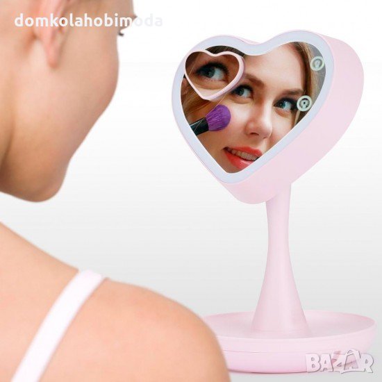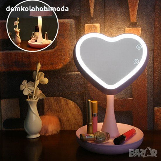 Настолно огледало за гримиране, С лед осветление, Сърце