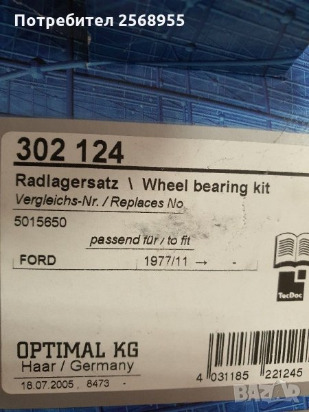 302124 OPTIMAL ЛЯВА И ДЯСНА ЛАГЕР ЗАДНА ГЛАВИНА FORD Transit Mk2 Mk3 Mk4 Mk5 1977-2006 OE 5015650 → Обява 31863646