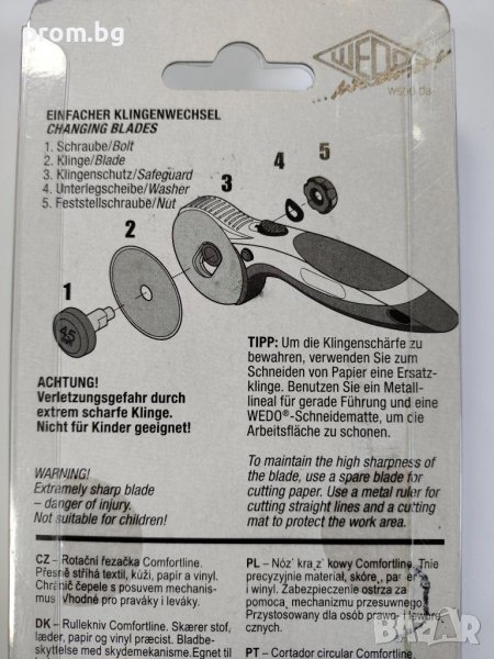 Wedo кожарски, сарашки ротационен дисков нож 45 мм, Германия → Обява 31865845