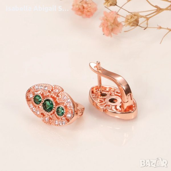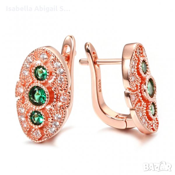 Обеци розово сребро със зелени цирконии → Обява 31866926