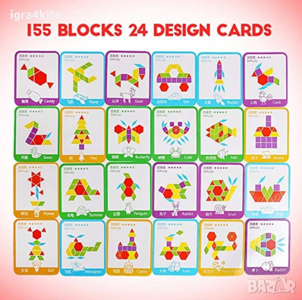 НАМАЛЕНА ЦЕНА С 55% ! ТОП АРТИКУЛ! Пъзел конструктор с 155 части мозайка стрител + 24 карти