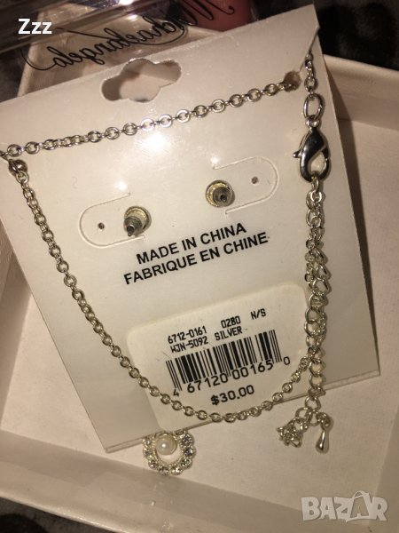 Колие и обеци сребърни с камъни и перли → Обява 31870060